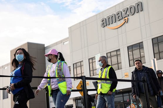 Amazon従業員、米国初の労組結成可決 NYの物流拠点で(写真=ロイター) - 日本経済新聞
