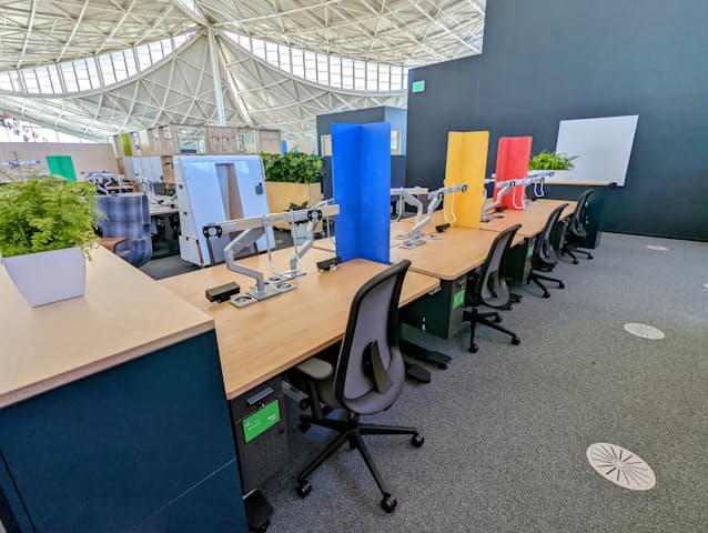 当初から柔軟性が高いデザインを採用したことで、建設中に新型コロナが流行して新たな働き方が広がったことにも対応できたという。執務スペースにはビデオ会議などに使う小部屋を増設した。会議室でも大型モニターを増やしたほか、デジタルホワイトボードを導入し、ビデオ会議の際の利便性を高める。
