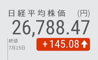15日の東京株式市場で日経平均株価は3日続伸し、前日比145円08銭(0・54%)高の2万6788円47銭で終えた。朝方は一部の値がさ株の上昇がけん引して上げ幅を200円超まで拡大したが、その後は世界景気減速への警戒から利益確定や戻り待ちの売りも目立ち、物色の広がりは限定的だった。