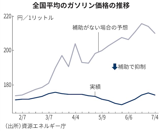 政府は1月から石油元売りなどに補助金を支給して給油所への卸値を抑え、販売価格の上昇に歯止めをかけてきた。ウクライナ危機後は世界で原油価格が一段と高騰し政府は補助制度を拡充してきた。