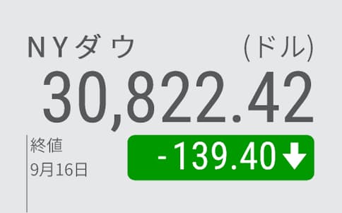 【NQNニューヨーク=横内理恵】16日の米株式市場でダウ工業株30種平均は続落し、前日比139ドル40セント(0.5%)安の3万0822ドル42セントと2カ月ぶりの安値で終えた。物流大手フェデックスが15日夕に発表した決算の速報値と業績見通しが振るわず、世界景気や米企業業績の下振れへの懸念が強まった。