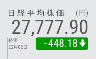 前日の米ダウ平均は194ドル安と3日ぶりに反落した。前の日に急伸した反動に加え、11月の米サプライマネジメント協会(ISM)製造業景況感指数が好不況の境目である50を割り込んだことが景気の先行きを不安視した売りにつながった。外国為替市場では円相場が1ドル=135円台まで円高・ドル安が進み、東京市場では景気敏感株や輸出関連株への売り圧力が強まった。