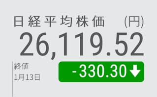 13日午前の東京株式市場で日経平均株価は反落し、前日比306円41銭(1.16%)安の2万6143円41銭で終えた。米国のインフレ減速と日銀による金融緩和修正への思惑を背景に、外国為替市場で円高・ドル安が進み、輸出関連株を中心に売りが膨らんだ。12日発表の2022年9~11月期決算が嫌気されたファストリが7%超下落し、1銘柄で日経平均を約200円押し下げた。