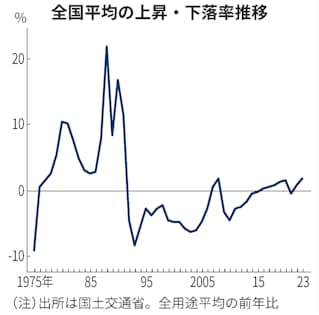 全国平均の上昇率は22年(0.6%)を1ポイント上回り、新型コロナウイルス禍前の20年(1.4%)を超えた。上昇地点は調査対象の全国2万6000地点の58%(22年は43.6%)に達した。
