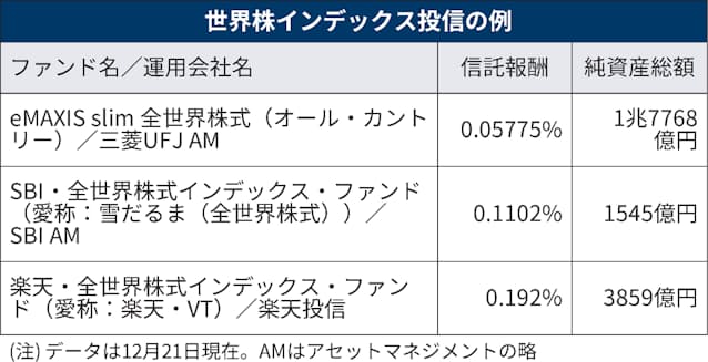 投資信託の手数料には①購入時手数料②運用管理費用(信託報酬)③信託財産留保額――の3つがある。2024年からつみたて投資枠に変わるつみたてNISAの対象投信は、基本的に購入時手数料がかからず(ノーロード)、信託財産留保額もない。従って同じ指数に連動する投信なら、信託報酬が低く、純資産が安定して増えているものを選ぶのが定石だ。